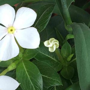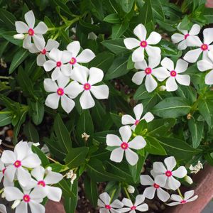 【No295 ニチニチソウ フェアリースター】 コンパクトな花が可愛い💕ニチニチソウ フェアリースターが綺麗です。 写真はその中のホワイト。純白な花の中に赤が映える姿が好きです。まさにフェアリースターです。 ニチニチソウは和名。一輪咲いて終わると別の一輪が咲くというサイクルが秋まで続く、いわば、毎日新しく咲き続けて途切れることがないということですね。夏場にも助かる貴重な花です。 ニチニチソウの花言葉は「楽しい思い出」「友情」。どことなく昔を思い出す花ですね。白のニチニチソウは特に友情の意味が強いです。色々な花と寄せ植えができることもいいですね。