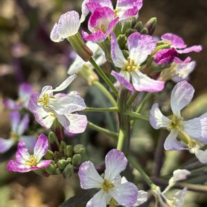 今日のお花 ダイコン です 公園の農園エリアで4月中旬に撮影しました😊 品種によって真っ白な花もあるみたいですが、綺麗な紫色のダイコンの花が咲いてました🥰