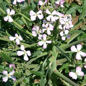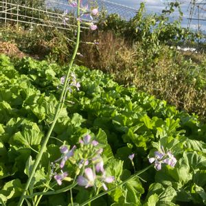 本日のお花、大根のお花です。 我が家では毎年大根を作り.種取りをしています。有望な大根を食べずに花を咲かせタネを採ります。 ピンクのかわいい花が次々に咲き、種となり、それをまいて、毎年美味しい大根となります。 今年も自家製大根、生育中です!