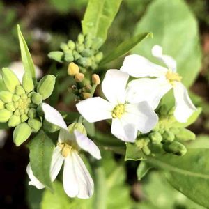 土に栄養が足りないのか… 大根があまり大きくならないので…放置していたら花が咲きました…😅 薹が立つまで育てる… そして…種取る? いえいえ…種取りませんよ… 野菜はほぼ…観賞用となっています…☺️ 白い菜の花…可愛い😊
