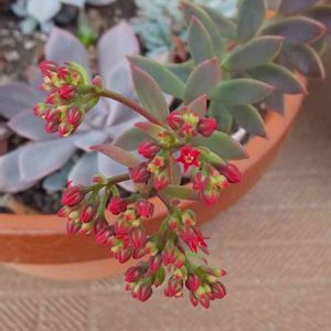 去年の8月にキャンドゥ鉢を作ったんですが、澄江かな?って言うコのお花が咲いて、これは澄江じゃないと判明。 シノクラッスラの名札が付いていたので、やはりこのコはインディカぽいです。 びょーんと茎が伸びたからエケっぽくないなぁ、と思ってたんで。 不明なコはお花が咲くとわかりますね😄 それにしても艶やかで綺麗な赤です🌼