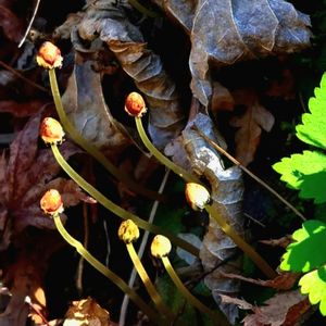 オオジャゴケ 🍄ིྀ 春になると胞子体を抱えた 雌 器 托 の柄が急激に伸びます
