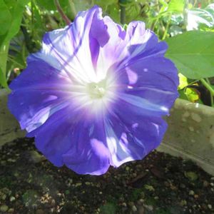 撮影:2019/09/17 変化朝顔 No.301 正木 青蝙蝠南天葉木立藤色筒先 塩害被害にならなくて元気に咲いてくれついます。