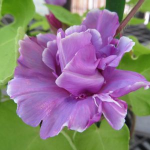 撮影:2019/08/28 (くらしの植物苑) 変化朝顔 No.408 牡丹出物 青斑入握爪龍葉淡藤鼠色風鈴獅子咲牡丹
