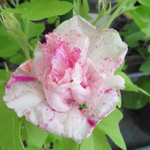 撮影:2019/08/28 (くらしの植物苑) 変化朝顔 No.962 牡丹出物 黄斑入洲浜葉紅吹掛絞丸咲牡丹