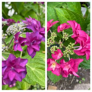 左、去年地植え!右、挿木から鉢植え! 本来、右の色😊 紫陽花って、本当に面白い! 咲くまでわからないね🤗