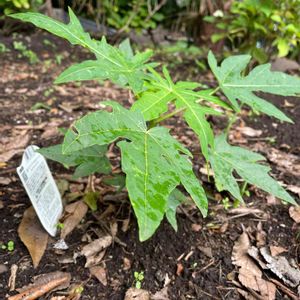 青パパイヤ、去年も迷い、購入断念! 今年も迷い、購入して来ました。 地植えしてあります。寒く成ると枯れるの承知で植えてあります。