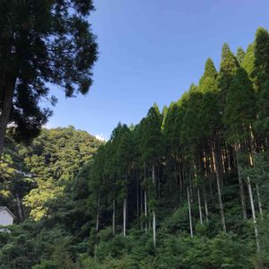 帰り道の一枚、杉山🌿⛰ 左手の奥に小さな水力発電所が見えてます