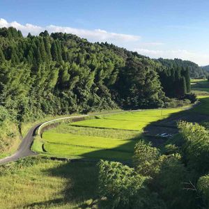 谷に沿って続く田んぼ まだ青いけど、もうすぐ黄金色の季節 帰り道シリーズ