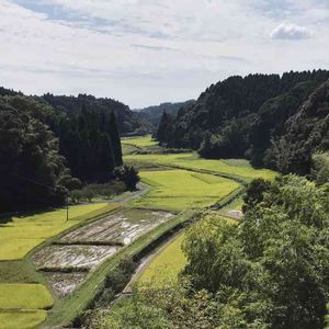 今日の帰り道🎶 少しだけ黄色になってる田圃 もうすぐ収獲のはず 台風来そうなので、心配されます