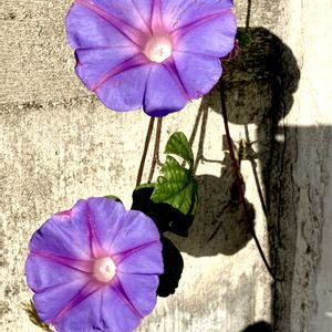 母を見舞いに行く途中 くっきり大輪の花を咲かせるアサガオにホッとさせられる