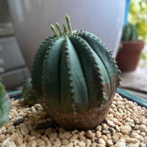 マルシェで見かけた実生オベサをお迎えしてしまいました😸 我が家初のユーフォルビアです❣️