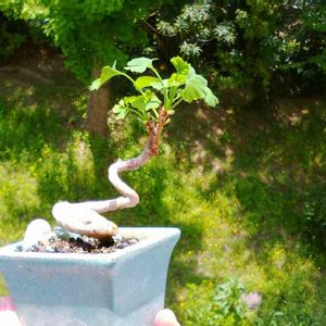 キンズ(金豆)の苗を構想通りに植え替えてみました。葉刈りをし、不要な枝を落とし、針金をかけ、90度回転させて半懸崖としました。キンズの「アーレー!」という叫び声が聞こえる気がしますが😅 ちなみに➡️は作業中不意に現れたハードボイルドなネコ🐈