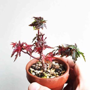 琴姫もみじ こちらも紅葉が進みました。 まだ青い部分残ってますが。 しかし、幹から張り付く感じで葉が出る琴姫はなかなかかっこ良く作り難いですね😅 枝出ないの?