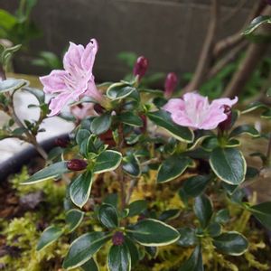 昨日載せた天皇梅のお花のアップ🌸 小さくてピント合ってるか微妙だけど🤳 梅の花とは似てなくて、小さくてコロンとした白~ピンク色🌸🌸🌸🌸🌸✨ 店頭には白っぽい株もあったけど、ピンク多めをお迎え🤗 葉っぱは小さくて厚みがあって濃い緑で白でもピンクでも映える組み合わせ🌸🌿 葉や枝ぶりも見映え良いから、お花が終わっても十分楽しめそう🌲✨✨ 昨日からずっと雨で、雨ざらしは心配だから日の当たる軒下に置いてます🙌