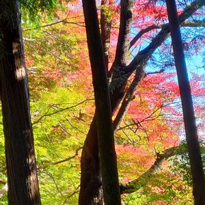 見上げると空と紅葉