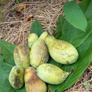 ポポー自然落下2個 本日キッチンダストネットを落下する前に装着 🤔 お盆頃かしら・・ ポポー栽培5年目 まとめあり