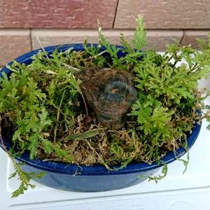 苔テラリウムです。 以前作成した苔テラリウムが、カビにやられてしまいました。。 (なにかよい対策はありますかね?) 写真は養生中の苔さんとシダさんです。