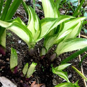 Beautiful Spots ⚪🥬🌱😌 冬を越した斑入りのツワブキ。⚪🥬🌱😄 斑の黄色と葉の緑のコントラストが堪らない…。これから、新しい葉が出てくる。楽しみだ。😄😄😄 1株、買って来て庭に植えたのが、種を飛ばして、今は、3株になっている。どれも綺麗な斑が入って、見るには最高❗⚪🥬👍 テリトリーを増やすのも、そこそこに…。これ以上、増えると抹殺することになる。控え目に生きるのが肝心、ヨロシコ❗ 👍👍⚪⚪🥬🥬🌱🌱😄😄👻👻