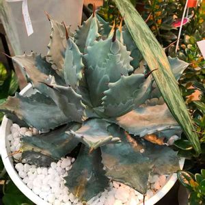 よく見たらアガベの針がお隣の子の葉をぶっ刺してる