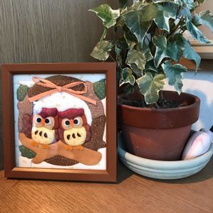 こんにちは🤗 フクロウ祭り忘れてました😅 アイビー🌱と、きめこみのフクロウ🦉です
