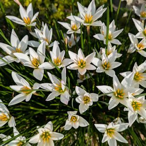 🍀🌻🪴💐🌹🌻🍀 🍀🤍タマスダレ🤍🍀 💐タマスダレの花言葉は(純白な愛) (期待)です 💐タマスダレはヒガンバナ科 タマ スダレ属(ゼフィランサス属)の多 年草(球根植物)の植物で原産地 南 はアメリカ、ペルー、メキシコな どです 💐開花期は8月~10月頃花色は白、 別名は レインリリー、ゼフィラ ンサス、球根や植物全体に毒性 (リコリンなど)があります 💐草丈は15~30cmほどで、細い葉 がニラに似ています 💐名前の由来は純白の可憐な花を(玉) に、細長く集まった葉を簾(すだれ) に見立てたことから名付けられまし た、英名のレインリリー(雨のユリ) 乾燥した後に雨が降ると一斉に花が 咲く性質があるため、英名で(レイ ンリリー)と呼ばれています 🍀🌻🪴💐🌹🌻🍀
