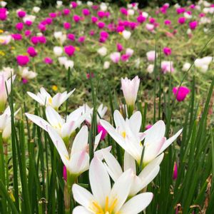 西尾市憩いの農園内の薔薇園の隣りで見つけたこの花🌸 真っ白な潔さが大好き💕 バックにはピンク色と白色のマツバボタンが引き立ててくれています🤗🌸 タマスダレ🌼
