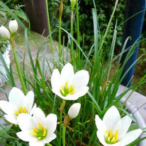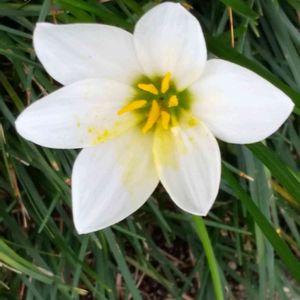 タマスダレ(ゼフィランサス)♡ 球根を植えつけてからどれくらい 経つかしら… 待ちに待ったお花がやっと咲きました😊