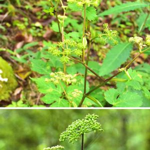 (似たもの比較) 一方これは「ノダケモドキ」と言います。セリ科シシウド属の同じ仲間なんですが、花序は淡緑色で私が今まで見た限り、ノダケほどまっすぐ立ち上がらないで茎がより分枝してるように思います🧐 これは同じシシウド属の「イワニンジン」の変化形で、イワニンジンが3回3出複葉なのに対して、1-2回3出複葉のものをそう呼んでいたのですが、イワニンジン自体必ずしも3回3出複葉とは限らず、最近は「イワニンジン」に含むとするのが普通ですね😄 「ノダケ」の葉は3出羽状複葉なんで、これでも違いはすぐにわかります。