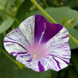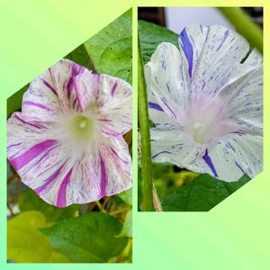変化朝顔 江戸風情 切り目をいれた種を一晩浸水し、種まきして1日で芽がでだしました。日に日に双葉が緑こくなってきましたが、先に蒔いた変化朝顔 青水晶より大分ミニです。可愛い〜 種も小ぶりだった。こちらは青白でいろんな模様が咲くみたい。開花の写真はネットからお借りしました。