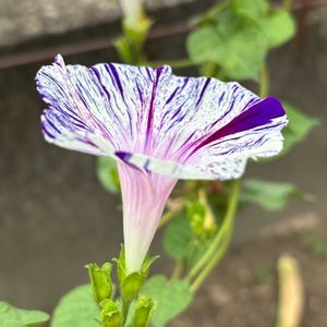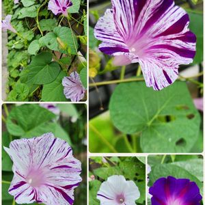今日のお花💜アサガオ💜 1、2、3枚目「江戸風情」 横から纏った💙あおいちゃんです 4枚目「ミルキーウェイ」 零れタネから咲きました🎶