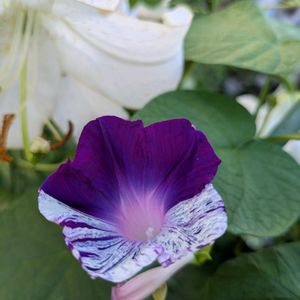 こんにちは☺️ 先日の今日のお花 アサガオ🌸🌿 今日朝職場で撮れました。 紫オンリーも綺麗ですね~♪ 🌿の虫食いが目立ちます😅 🌀☔台風の今後のお天気気になりますね。 どこも被害なく通過しますように🛐