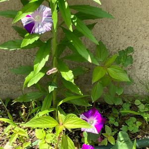 えっ🤯‼️ もう朝顔が💦 去年の溢れ種から花が咲きました❣️ 季節に押されています〜