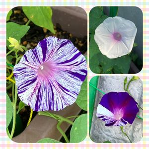朝顔 江戸風情✨ 昨日の朝、咲いておりました😊 頂き物の種ですが、この子を含めて3種類✨ 全て発芽し、葉っぱもモリモリなのですが… この子だけ異様に早く伸びております(笑) 他の2種類も咲き次第 投稿しようと思っております😉 リトルネーブルさん✨ ありがとうございます💓😊