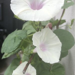 朝顔江戸風情、白系が咲きました。 涼しげです。