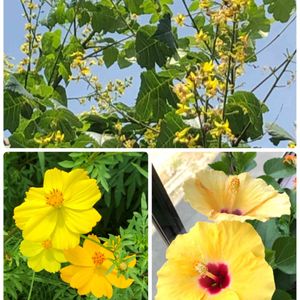 集金先の黄色いハイビスカス 🌺 集金途中の道路端の黄色いコスモス🌼 も一つ途中の黄色💛