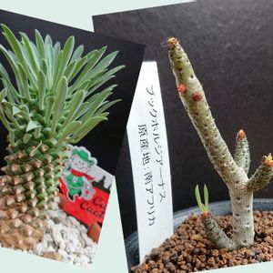左、旦那っち初めての多肉! ユーフォルビア 蘇鉄麒麟 右、ナーセリーに付き合ったので狩らせた…もとい!狩ってもらった多肉~(笑) チレコドン ブックホルジアーナス 二人でナーセリー通い始めたら…楽しいけど…ヤバイよねぇ…🤣👛💦 今週末はナーセリーの創業祭だそうですよ~Ψ(`∀´)Ψケケケ