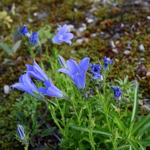 利尻島 高山植物展示園では、こんな高山植物も咲いていました💕🎶 ①② イワギキョウ 北海道〜中部地方の高山の砂礫地や草地に群生するのが見られる。 高さ10 cmほど。 葉は束生で細長く、1.5 - 3 cm。 花期は7 - 8月。 草丈の割には大きな青紫色の花を横〜上向きに咲かせる。 本種とよく似たチシマギキョウの花には繊毛が生えているが、本種には生えていないのが識別ポイント💜 ③④⑤ イブキジャコウソウ 北海道、本州、九州に分布し、海岸から高山帯までの日当たりの良い岩地に生育する。 花期は6-8月。 枝の先端に短い花穂をつける。 花冠は紅紫色の唇形で、上唇はわずかに2裂して直立し、下唇は3裂して開出する。萼は筒状鐘形の唇形となる。雄蕊は4本ある。 果実は分果となり、やや扁平となる。