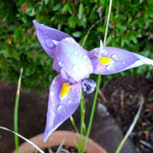 おはようございます(*^^*) 雨☔の日は、 こんな感じで咲くのがゆっくりな モレア・ポリスタキア─💜 はにかんでいるような… 右下↘️の丸いしぼんだものは、 昨日まで咲いていた花の終わりの姿です! モレア・ポリスタキア─10月から12月開花期 アヤメ科 モレア属 花言葉…感受性