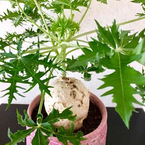 おはよう〜ございます😊 お誕生日にbubuちゃんからのプレゼント🎁いただいちゃいました❤️ しかも珍奇植物さんとドマーニのピンクの可愛い鉢😍 お芋さんの様な塊根を鑑賞価値としてるヤトロファベルランディエリという植物で和名は錦珊瑚と言うそうです💕🎶 錦珊瑚と言われるのはきっとお花がピンクの珊瑚の様に咲くからだと思います💕
