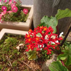 『ヤトロファ ベルランディエリ』 錦珊瑚 お花が咲いてます‼️ ピンクの可愛らしいお花🌸 豊橋は小雨で風も大したこと無く過ぎました。 良かった~😊