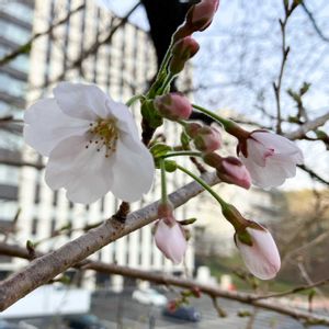 染井吉野 バラ科 待ちに待った開花宣言がありました。 近くの公園にもやっと一輪二輪お目覚めです☺️