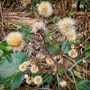 ツワブキ (石蕗) 冬の間のモフモフ🥰 タンポポのように、直ぐには飛んで無くならないようです。今でもしっかりモフモフしてる。😄
