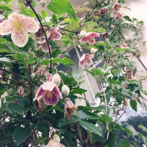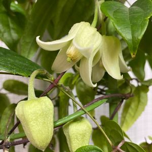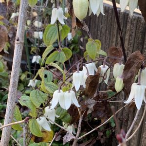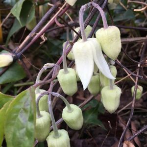 冬咲きクレマチス 小さな花がうつむいて咲いています♡ 華やかさは、ありませんが、可憐で優しい姿に 癒されます💕