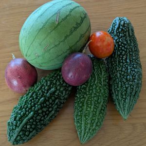 おはようございます☀️🌱 夏の収穫 なんか嬉しい☺ 🍉スイカ 🥒ゴーヤ 🍅トマト バッションフルーツ