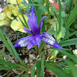 放置の寄せ植えから🎵 ヒメシャガ? 何だろう?