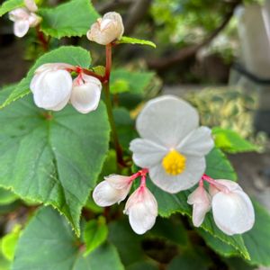 ウラベニシュウカイドウ (裏紅秋海棠) 見えていませんが 葉っぱの裏が赤いです૮ ´͈ ᗜ `͈ აアカイヨ オシベガ トウモロコシミタイ🌽
