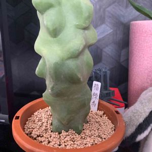 ロフォケレウス属 福禄寿 Lophocereus schottii f.monstore ロホセレウスとか福禄寿と呼ばれているこのとげなし柱サボテン、 正体はロフォケレウス属ショッティ(上帝閣)がモンスト化したものらしい。 ミルチロカクタス属ゲオメトリザンス(竜神木)がモンスト化した福禄竜神木(乳柱)と間違えて表記されていることも見かけるけど、属から違う別物。 ややこしい。 高さ 19 cm 幅 4.5 cm