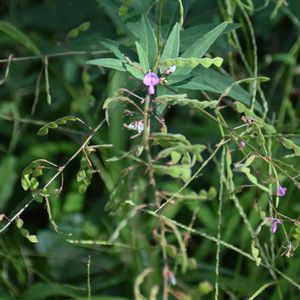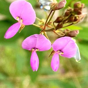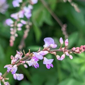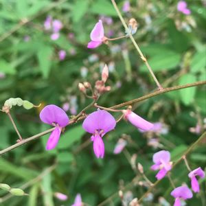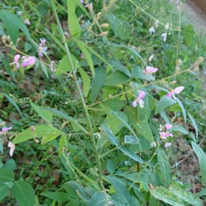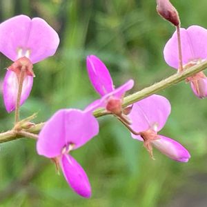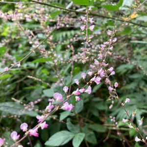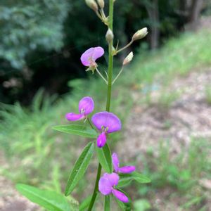 萩?と思ったけどちょっと様子が違います。 葉っぱも細長いし。 調べてみたところマメ科ヌスビトハギ属でヌスビトハギの仲間、アレチノヌスビトハギ(荒れ地の盗人萩)みたいです。 すごい名前❗️