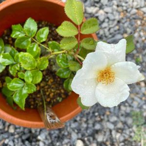 挿し木したホワイトノックアウト 5センチくらいの小さな苗なのに花が咲きました🌹😊薔薇じゃないみたいです✨